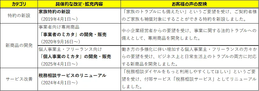 ■お客さまの声が生んだ「弁護士保険ミカタ」の具体的な進化(2018年以降の実績)